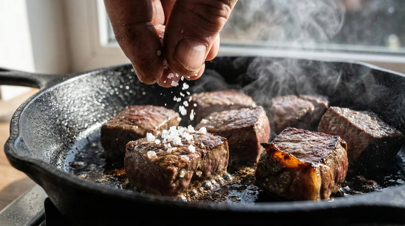 Dana ciğeri yapısı gereği son derece hassastır ve nem dengesi çok hızlı bozulabilir. Eti tavaya almadan önce veya pişme işleminin başında tuzladığınızda, tuz anında ozmoz etkisi yaratarak ciğerin içindeki tüm suyu dışarı çeker. Kendi suyunu kaybeden ciğer, saniyeler içinde kuruyarak o nefret ettiğimiz kayış gibi, çiğnenmesi imkansız bir dokuya bürünür. Çoğu kişinin ciğer yemekten kaçınmasının asıl sebebi de yanlış pişirme tekniğinden kaynaklanan bu sertliktir.
