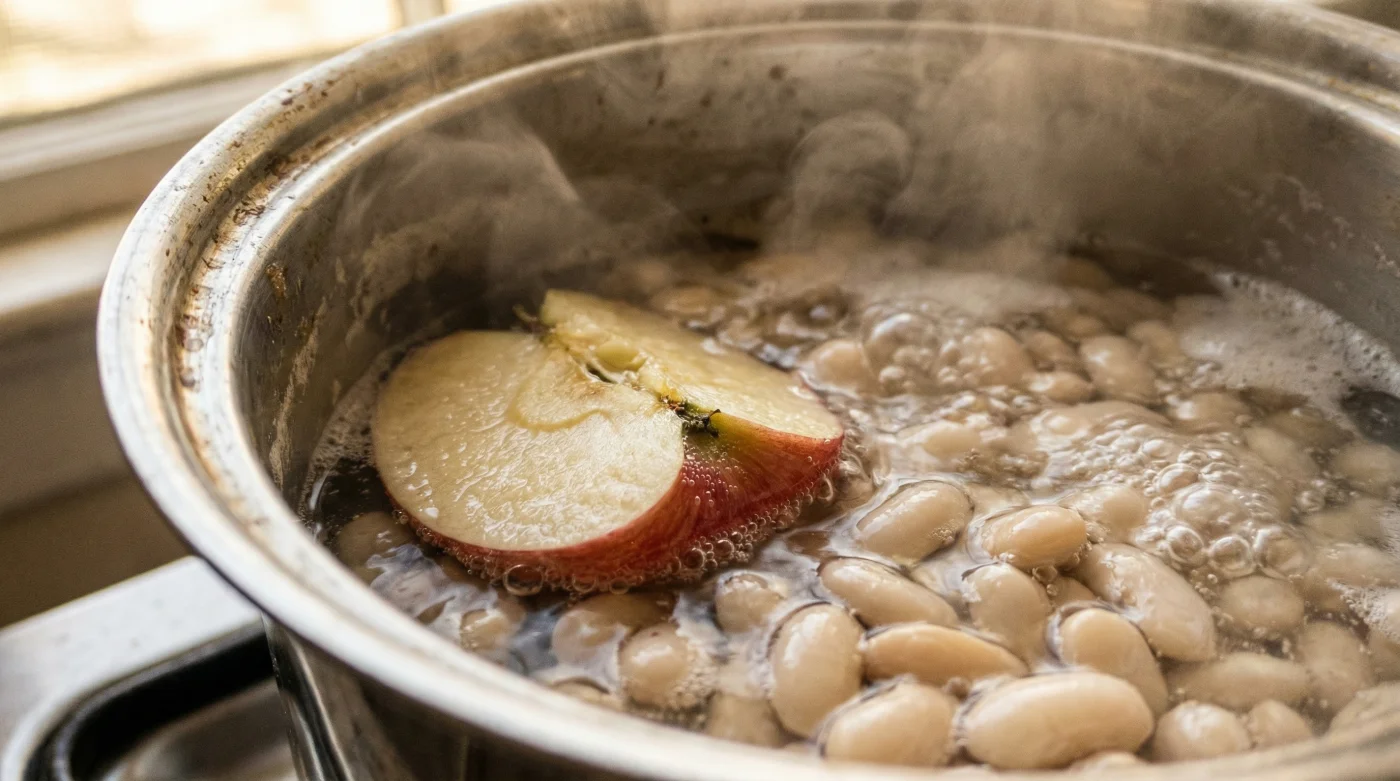 Aslında fasulyenin dış kabuğu, onun zırhıdır. İçerideki nişasta ısındıkça genleşir ve kendine alan açmak ister. Eğer dış kabuk yeterince esnek değilse, içeriden gelen bu basınca dayanamaz ve çatlar. İşte tam bu noktada, tabiatın bize sunduğu çok daha zarif, sessiz ve kimyasal olmayan o mucizevi çözüm devreye giriyor: Yarım bir elma.