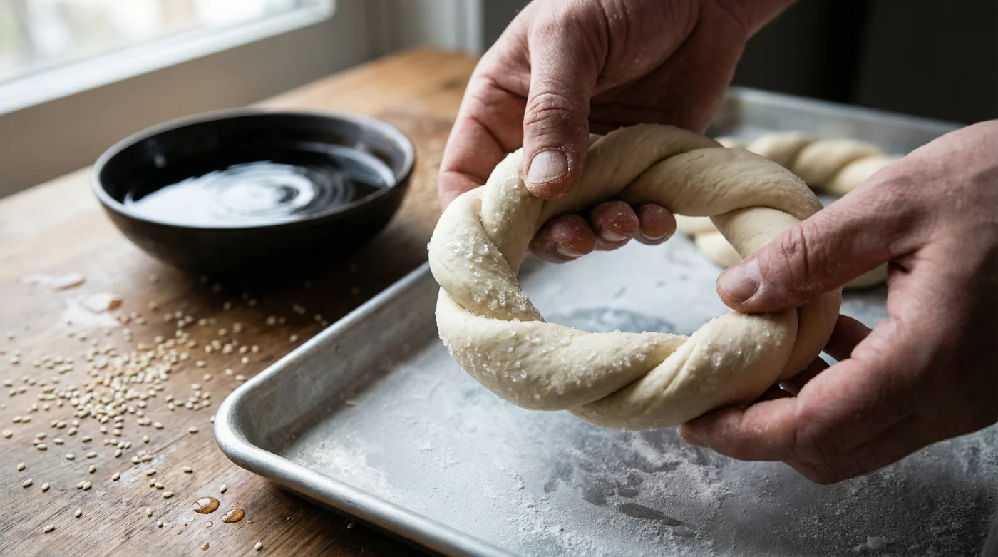 Şimdi o soğuk ve gergin halkayı, oda sıcaklığının biraz üzerinde hazırlanmış ılık pekmezli suya usulca daldır. Bu ani sıcaklık farkı, hamurun dış yüzeyini anında mühürler. Soğuk gluten ağı, pekmezin o tatlı dokusunu yüzeyde tutar, hamurun içine sızıp onu içten içe çamurlaştırmasına izin vermez. Susama bulayıp fırına verdiğinde ise, dıştaki o sıkı yapı yüksek ısıyı yediği an aniden genişleyerek mikroskobik çatlaklar yaratır. Sokak simidine has o efsanevi çıtırlığın sırrı işte tam olarak bu çatlaklarda gizlidir.