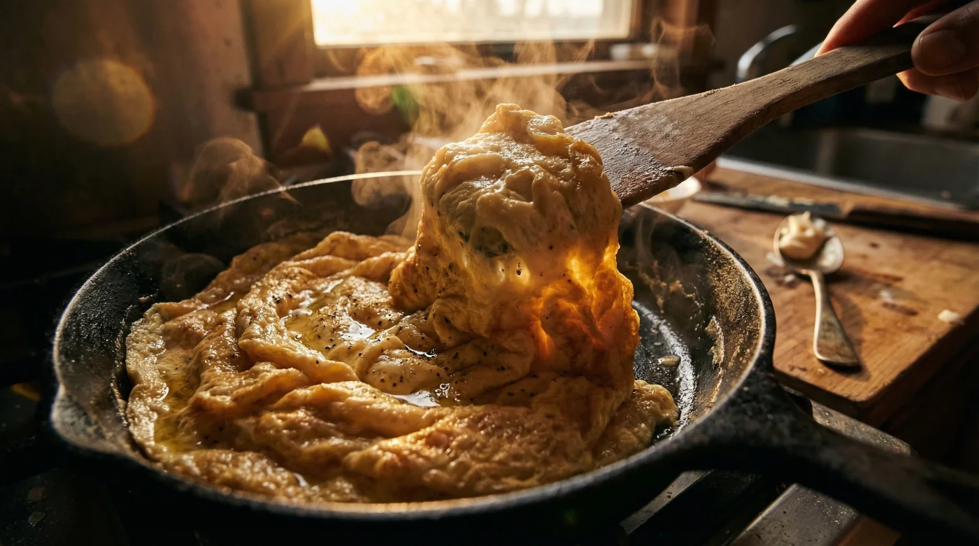 Süt veya su eklendiğinde yumurtanın nem oranı artar; bu da pişirme sırasında sulanma, ayrışma ve yapının çökmesi riskini doğurur. Oysa mayonezin mucizesi kimyasında gizlidir. Mayonez, mükemmel bir yağ ve yumurta emülsiyonudur. Çırpılmış yumurta harcına karıştırıldığında, pişme esnasında yumurta proteinlerini stabilize eder. Bu özel bağ sayesinde yumurtalarınız yanmaz, tavada suyunu salmaz ve ısıyı aldıkça kabarıp hacim kazanır. Sonuç? Kendi hacminin iki katına ulaşan, otel usulü devasa ve pofuduk bir çırpılmış yumurta tabağı.
