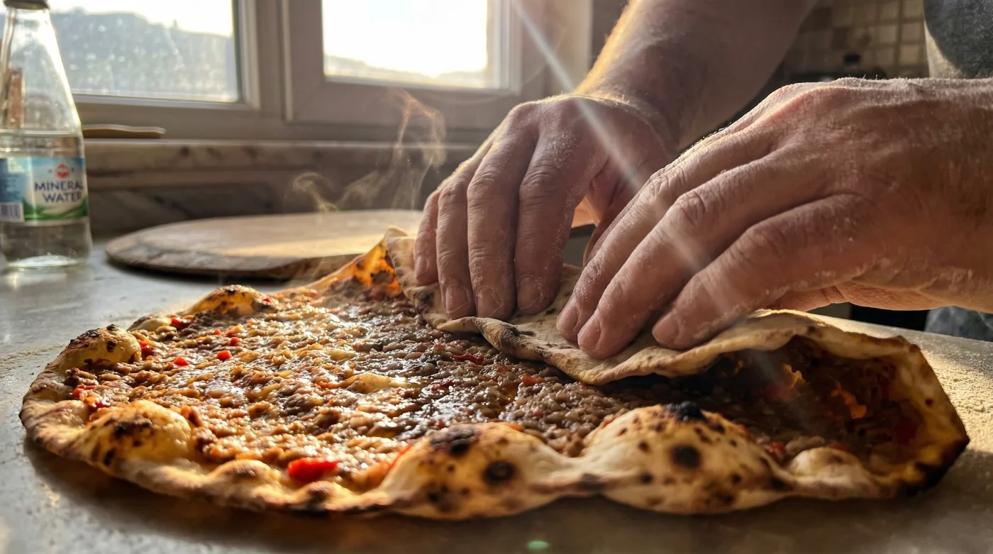 Pişirme aşamasında, eğer mutfağınızda mevcutsa kordiyerit bir pizza taşı veya fırının içine ters çevrilerek önceden aşırı kızdırılmış kalın tabanlı bir fırın tepsisi kullanın. Bu yöntem, lahmacun hamurunun alt tabanının saniyeler içinde mühürlenmesini sağlarken; maden suyunun mucizevi etkisiyle nemini son damlasına kadar koruyan üst harcın usulca ve sulu kalarak pişmesini garanti altına alır. Sadece 6 ila 8 dakika gibi kısa bir süre içerisinde fırından aldığınızda, hem kenarları odun ateşinde pişmişçesine hafifçe közlenmiş hem de sıcakken rulo yapıldığında asla ama asla yırtılmayan o efsanevi yapıya kavuşacaksınız.