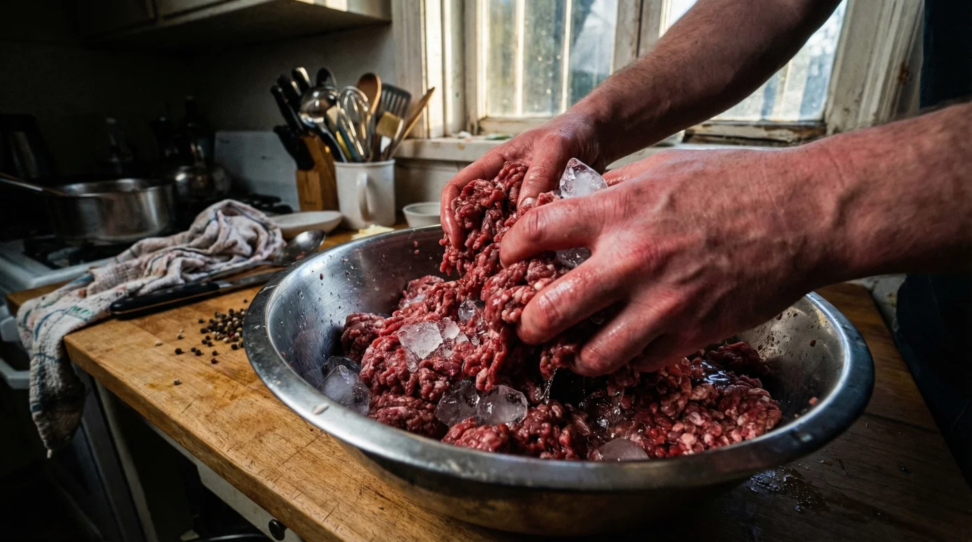 İnegöl köfte harcı buzlu suyla yoğrulduğunda, kıymanın içindeki yağ molekülleri anında şoklanarak sertleşir. Bu ani soğuk etki, yağın ellerinizin ısısından etkilenip vaktinden önce erimesini kesin olarak önler. Yağ molekülleri sertliğini koruduğu için etin bağ dokusu arasına sımsıkı tutunur. Böylece köfteleriniz ızgaranın o yüksek ateşiyle buluşana kadar yağ erimez ve formunu korur. Izgara teline değdiği anda ise dışı mühürlenen köftenin merkezinde eriyen yağ, dışarı akmak yerine eti içeriden mükemmel bir şekilde nemlendirir. Sonuç mu? Asla kurumayan, ızgarada küçülmeyen ve yağını dışarı kusmayan profesyonel şef işi kusursuz İnegöl köfteleri!